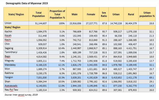 MIN MYANMAR RESEARCH Our Findings Give You Business Decision Making Statistics Demographic Data of Myanmar 2019